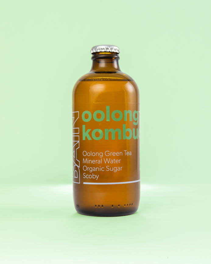 BAIN Oolong Kombucha has a marvellous complexity with a velvety mouthfeel. Its delicate citrus fruit acidity is perfectly balanced with a rich sweetness. A deliciously, robust bodied non-alcoholic beverage with nutty undertones.