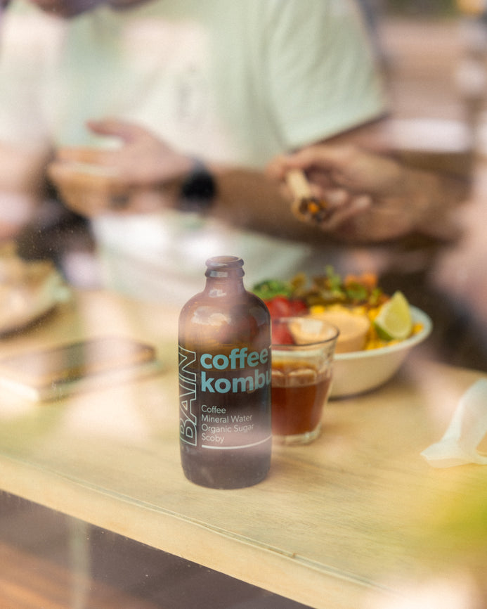 BAIN Kombucha BAIN Kombucha is a living drink. Its surprisingly unique flavour comes from using traditional fermentation techniques alongside high-quality ingredients in a brewed infusion. It is a rich source of vitamins, minerals, antioxidants and probiotics. These promote alkalinity within your body and keep your tummy happy!
