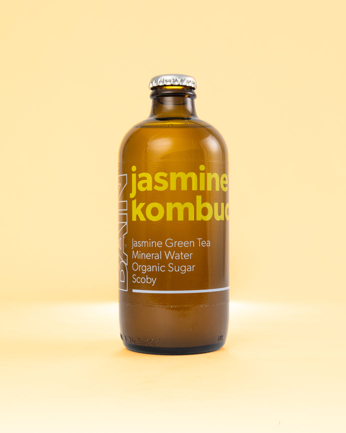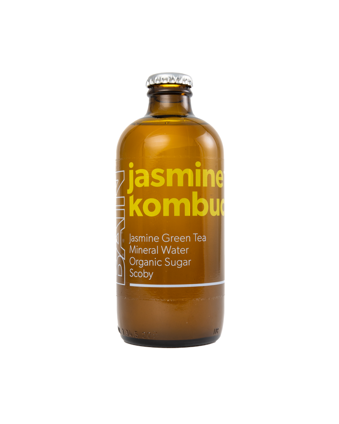 BAIN Jasmine Kombucha has an elegant brightness with mild floral notes. Its pleasant lemon-like acidity is perfectly balanced with a subtle sweetness. A deliciously refreshing, light-bodied non-alcoholic beverage.